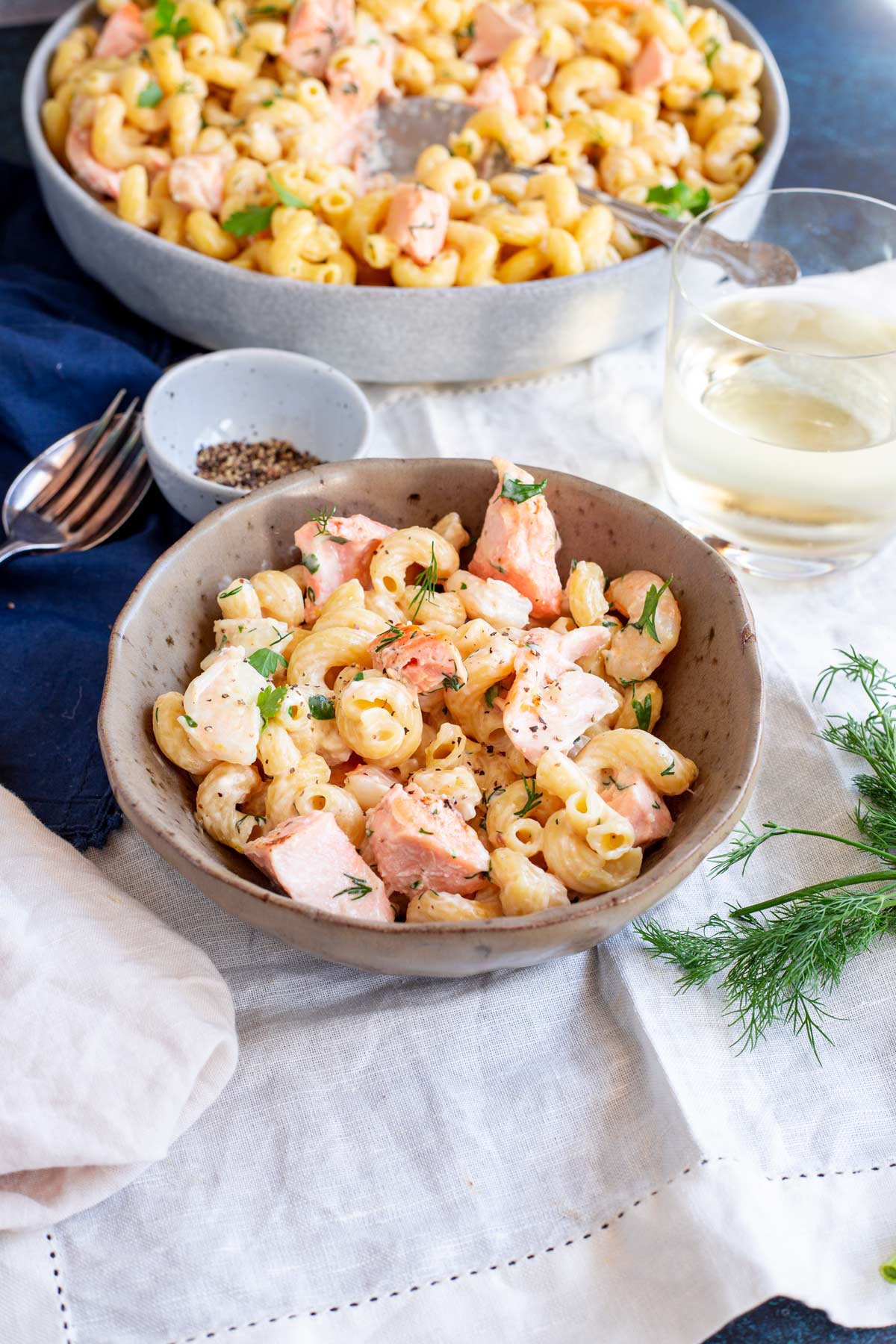 • Pan Seared Salmon with Creamy Lemon Pasta